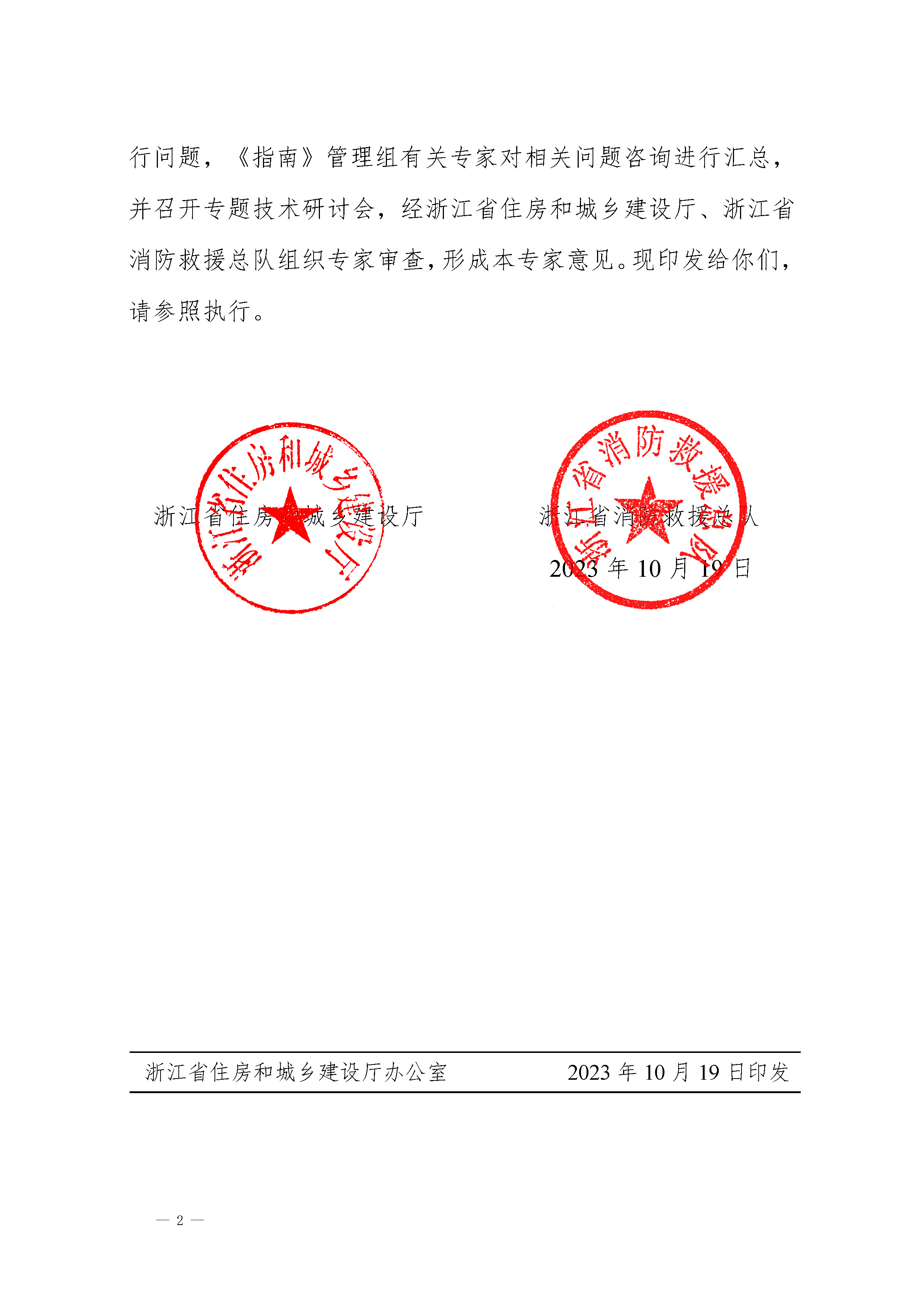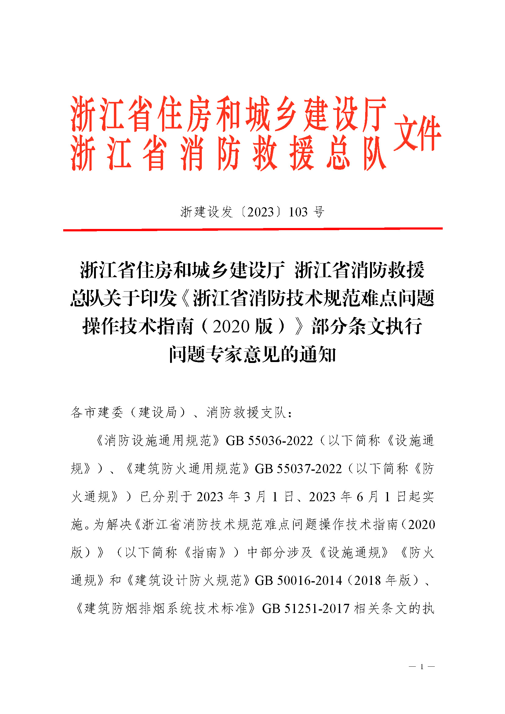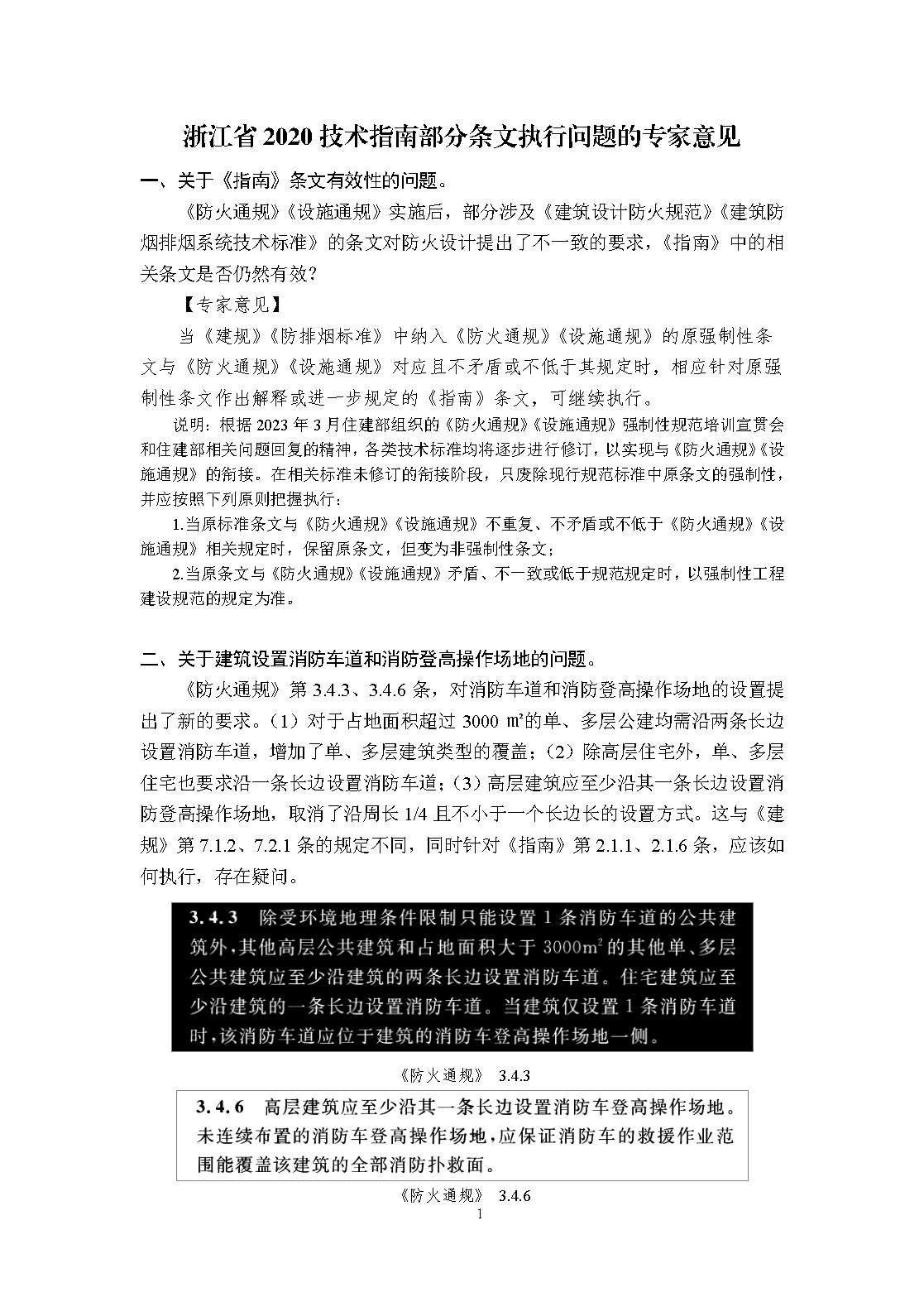 《浙江省消防技术规范难点问题操作技术指南(2020版)》部分条文执行问题的专家意见(浙建设发〔2023〕103号)