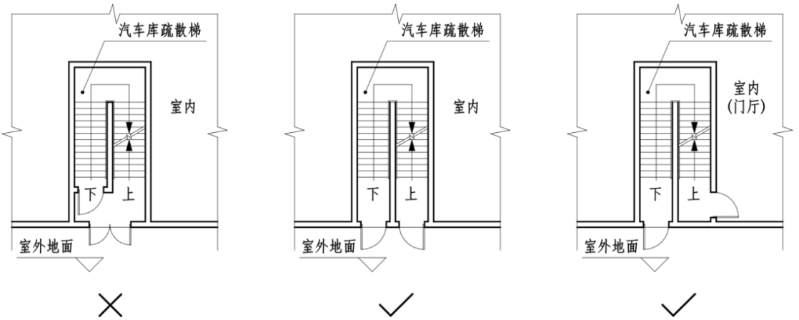 2.3.4 当地下汽车库、非机动车库的坡道出入口不作为排烟口使用时,坡道出入口与上部建筑物的距离可不限;但当属于本《指南》第2.3.5条规定的情况时,应按该条的规定执行。