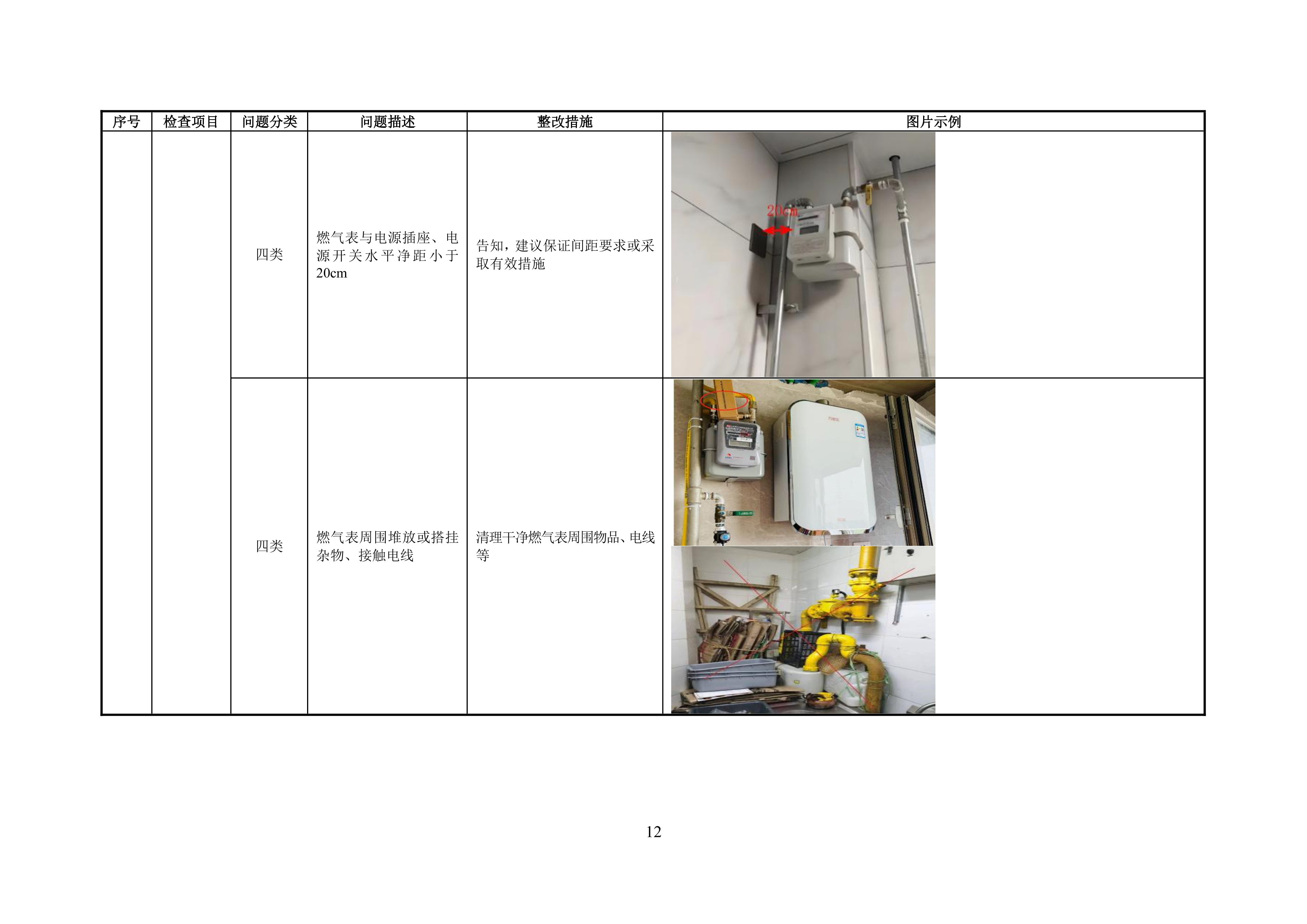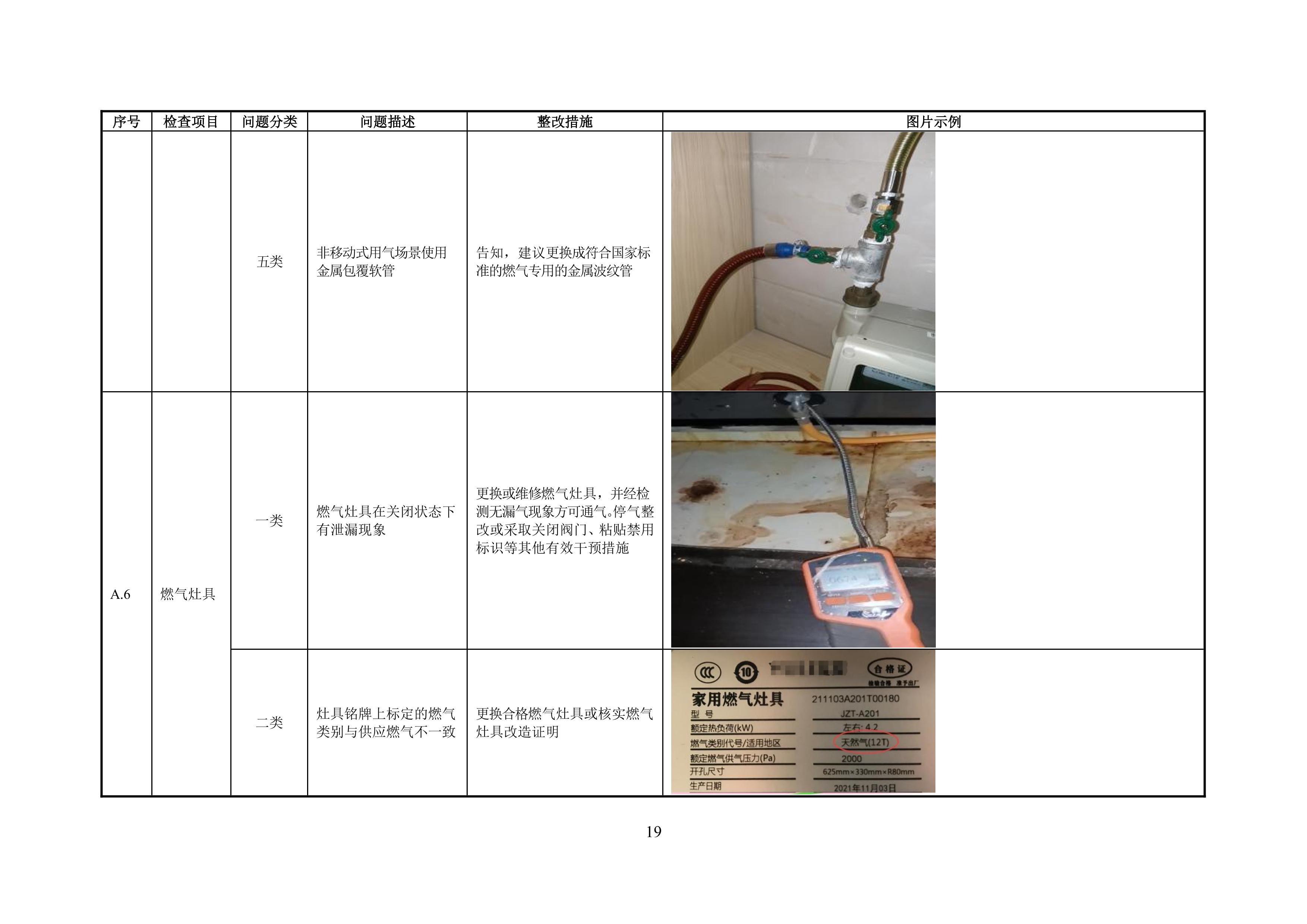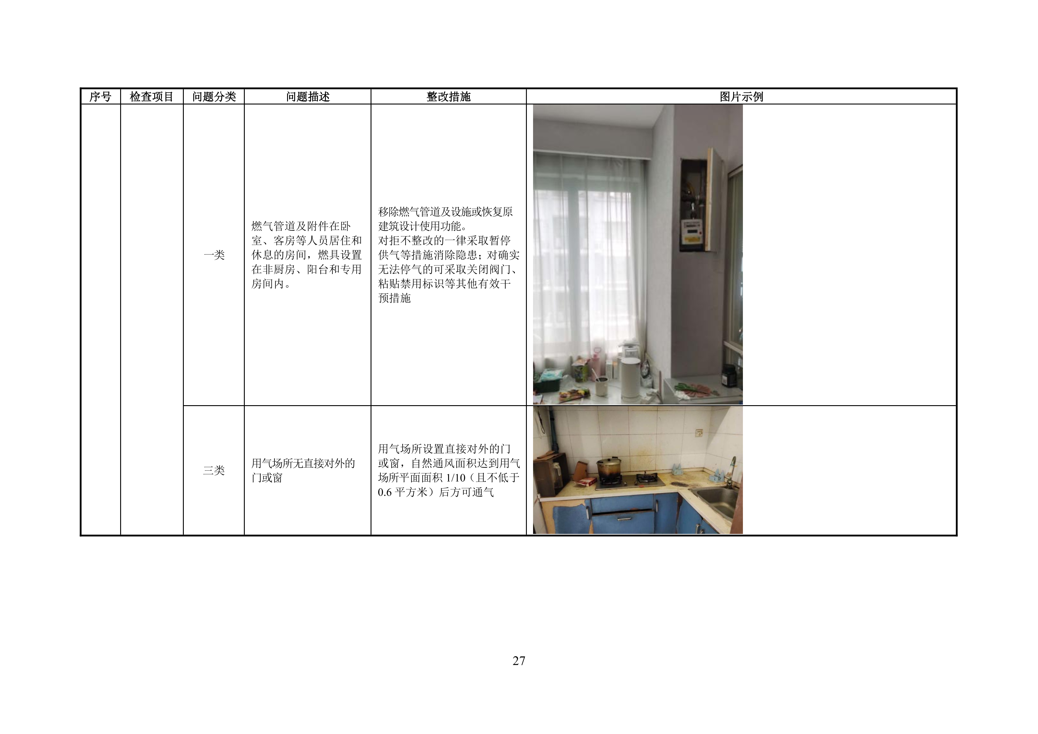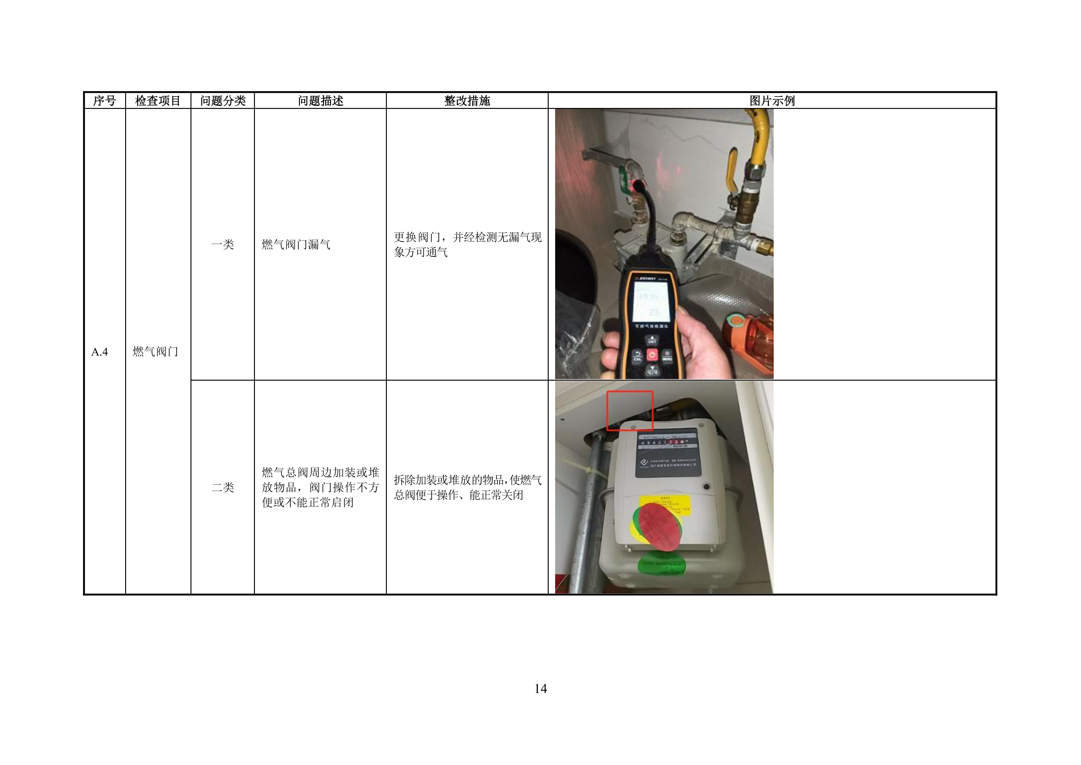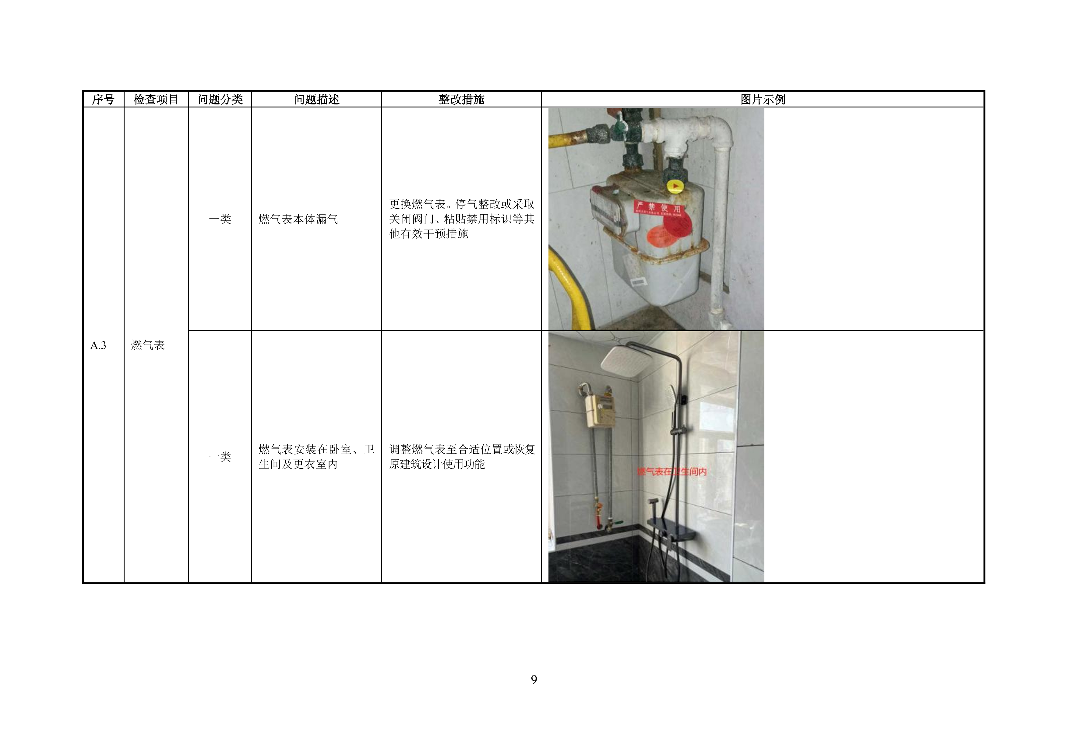 附录 A 管道居民用户燃气安全问题分类表