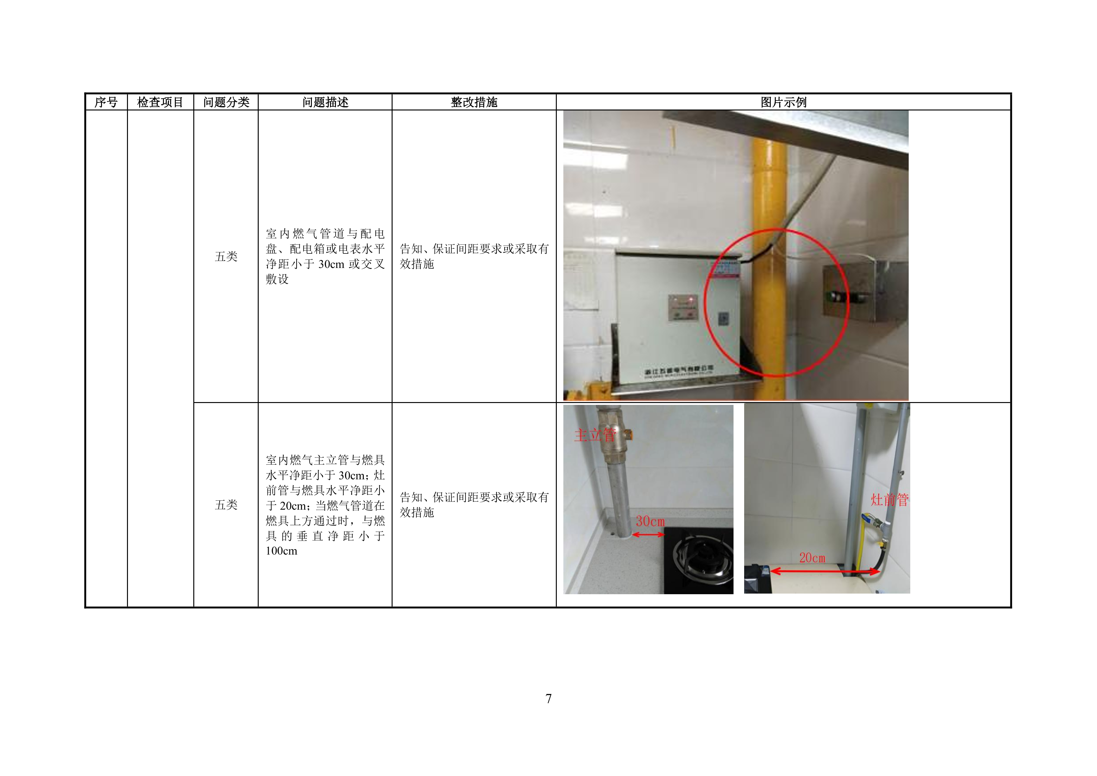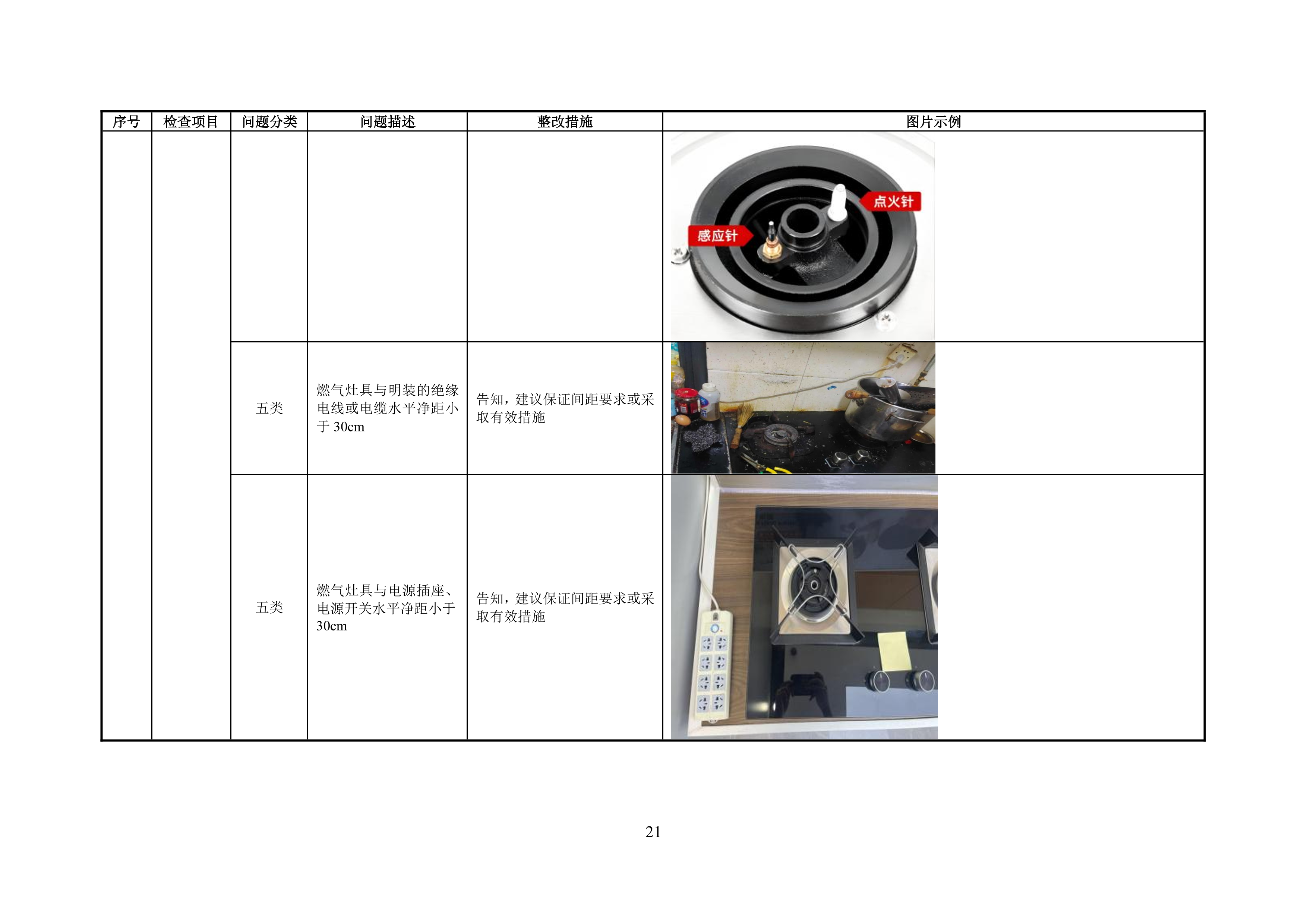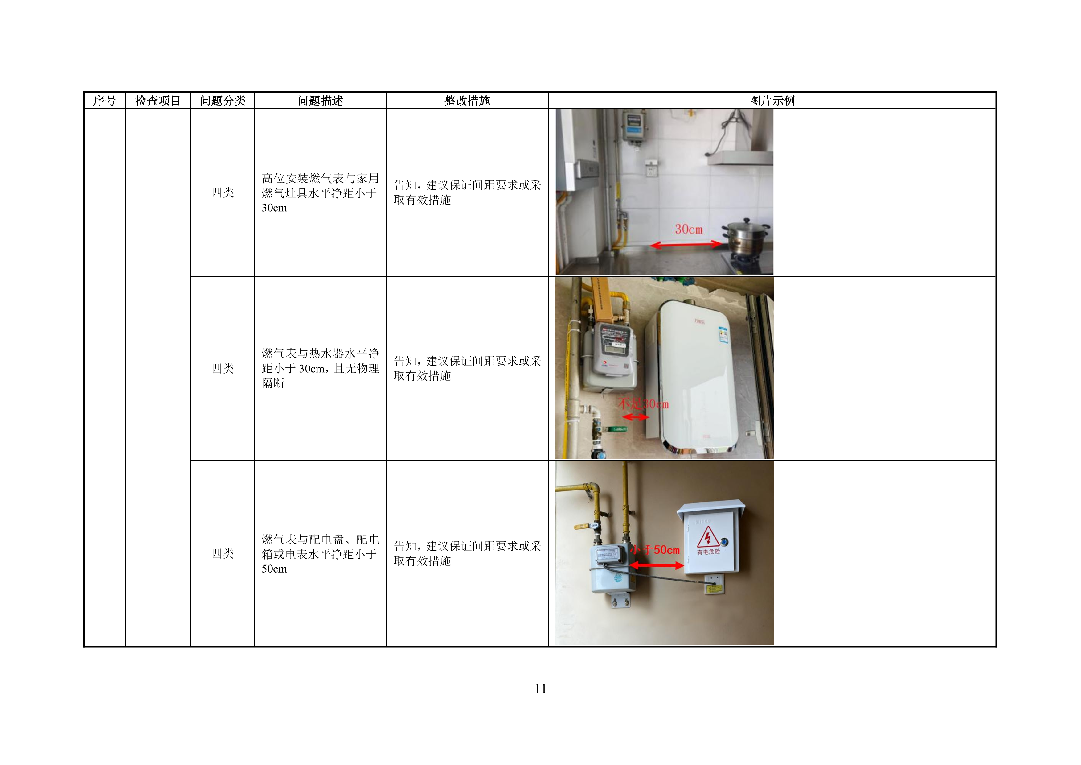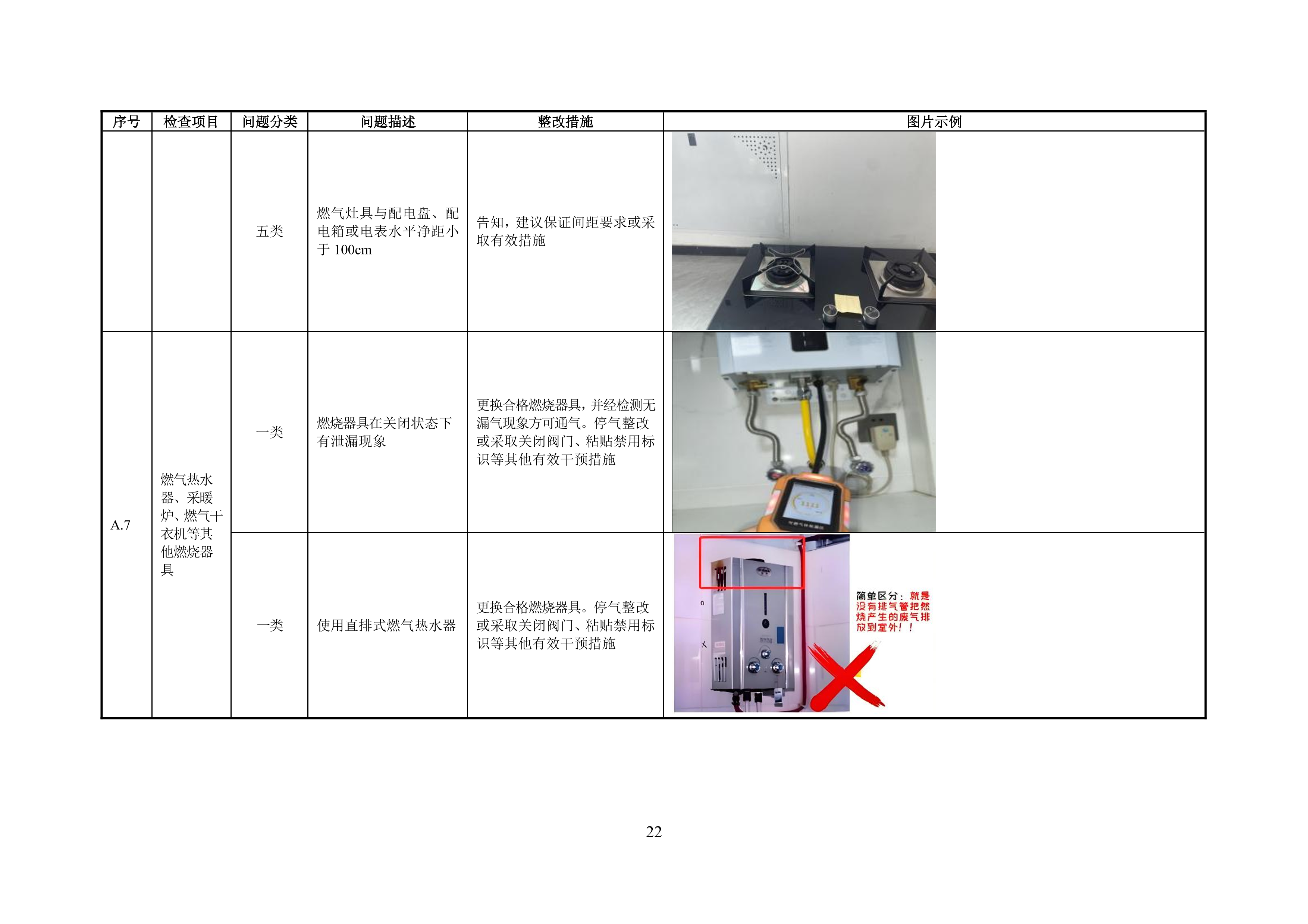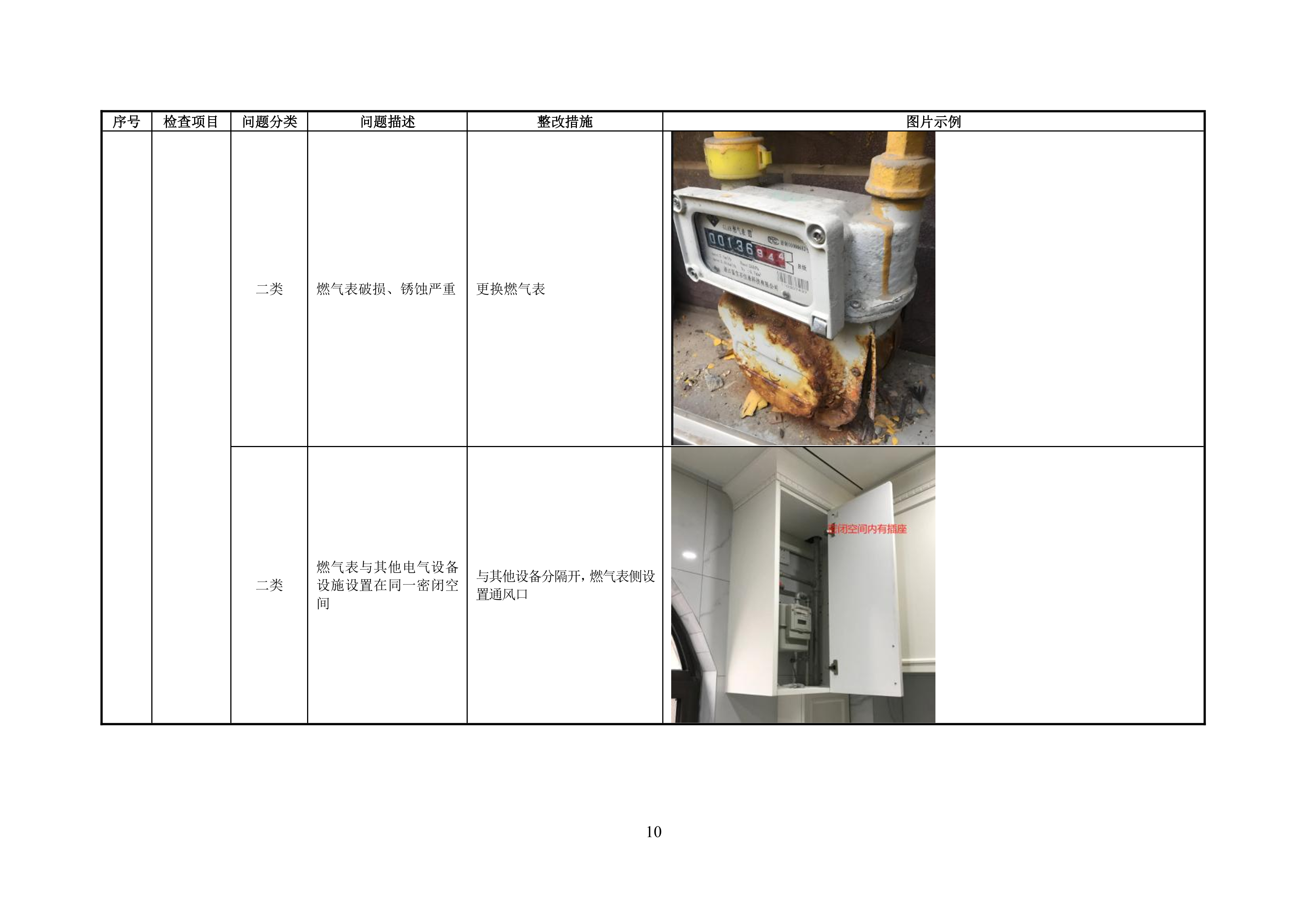 附录 A 管道居民用户燃气安全问题分类表