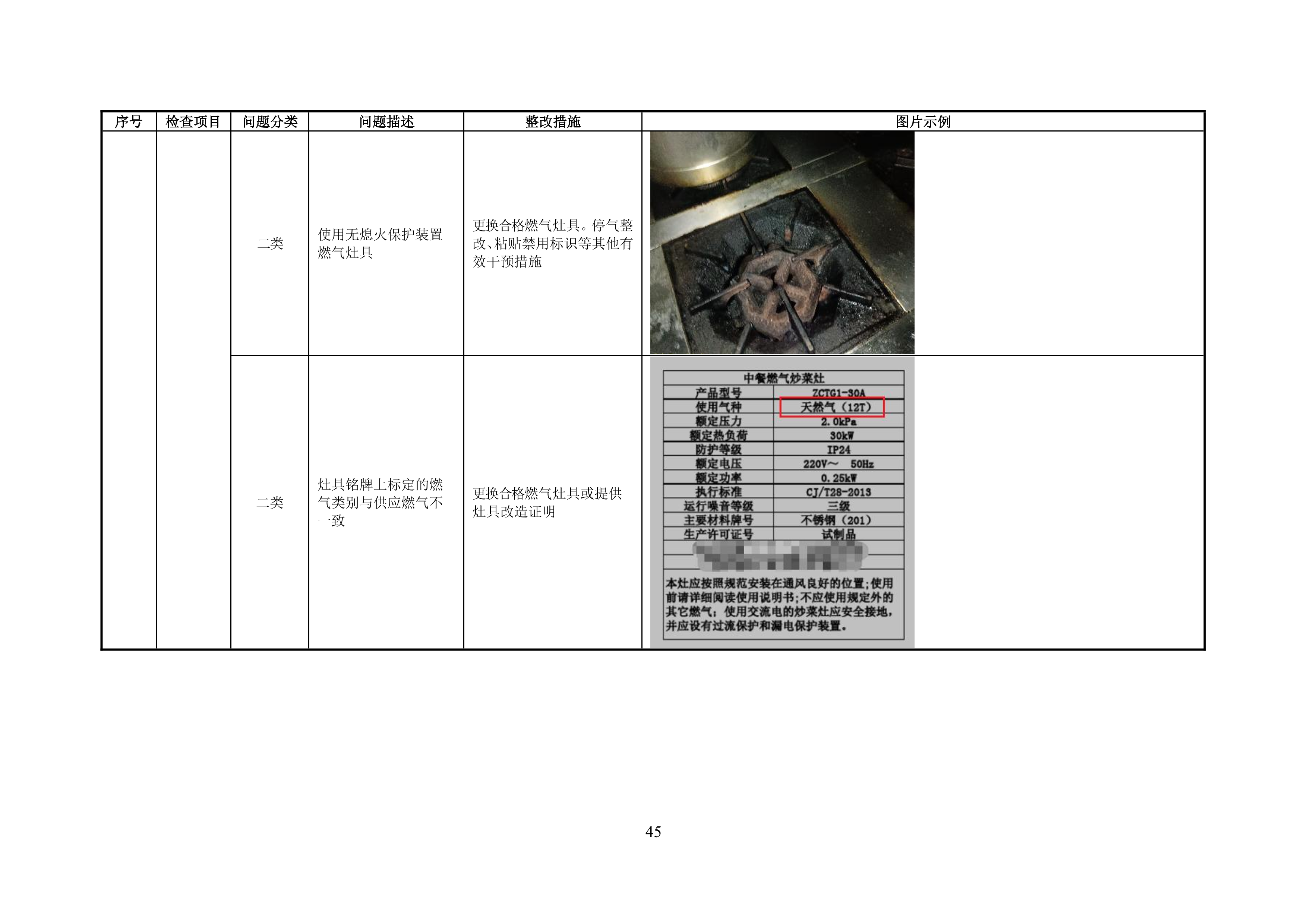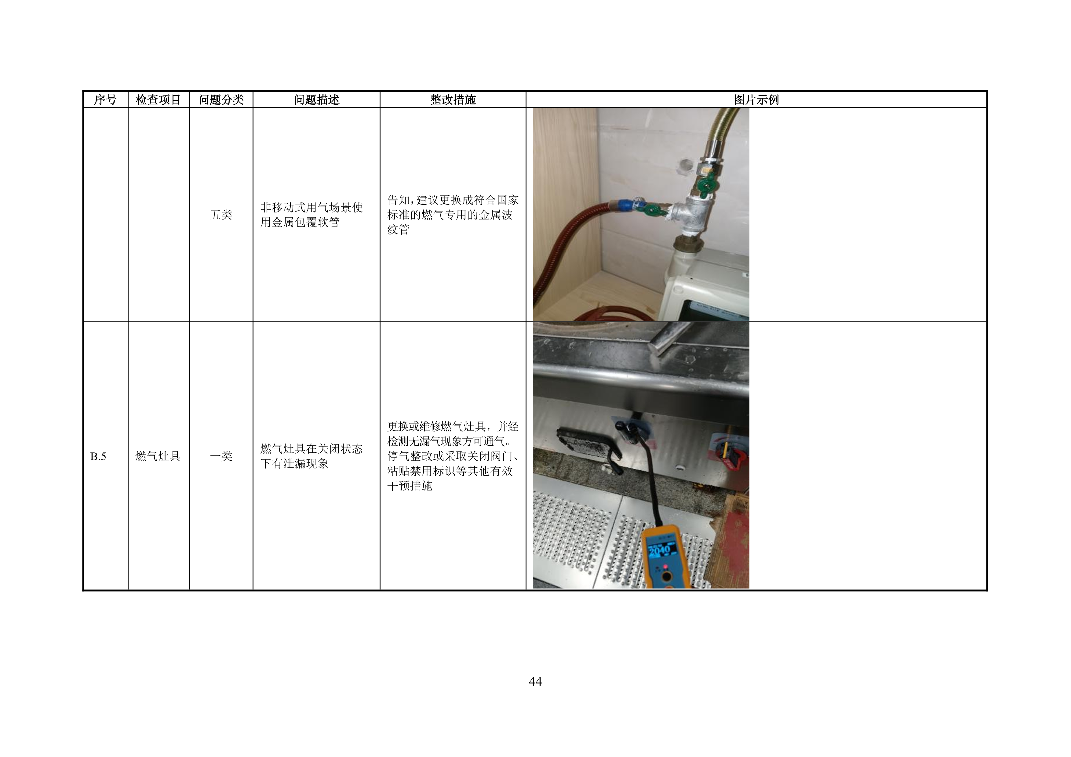 附录 D 瓶装非居民用户燃气安全问题分类表