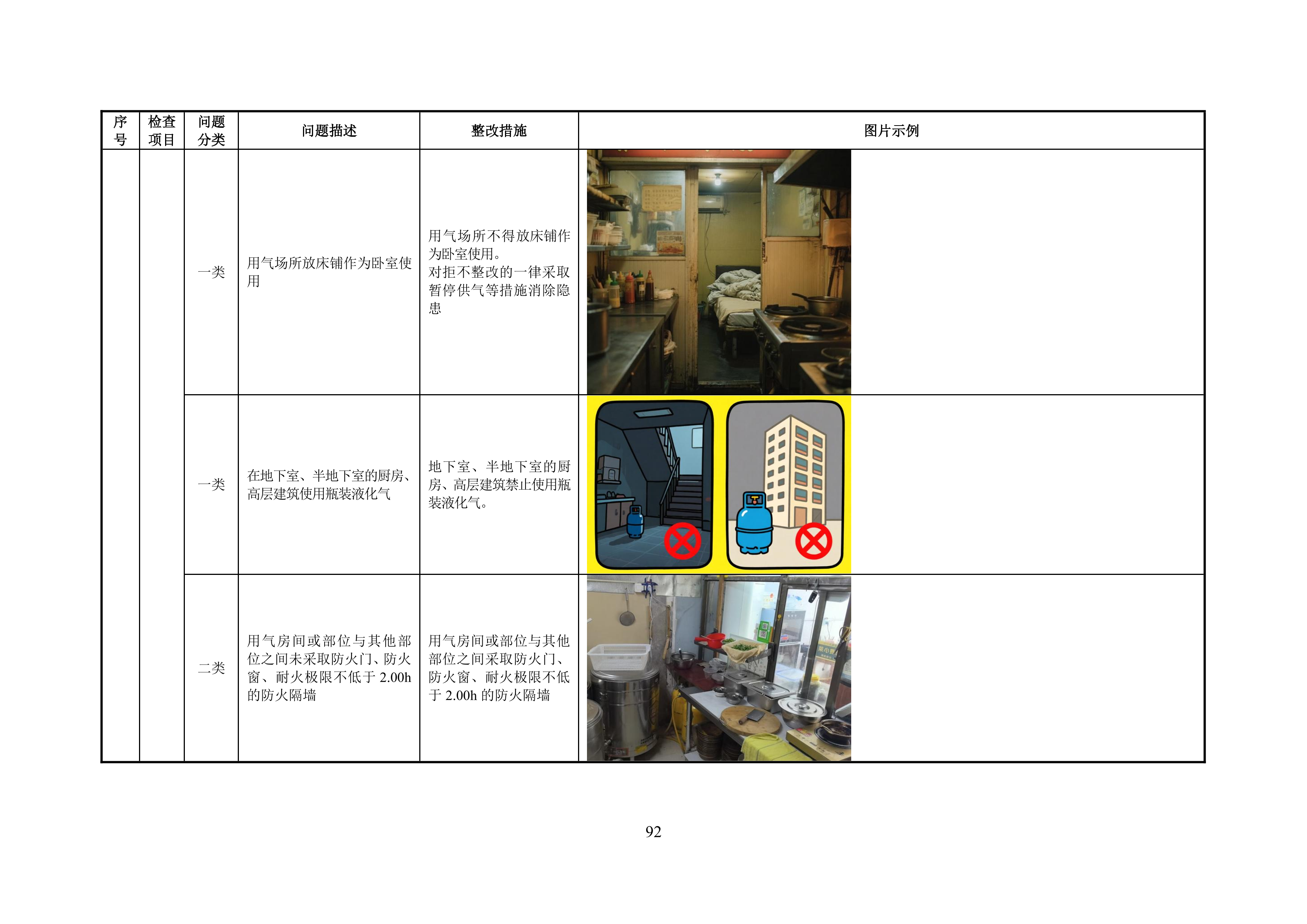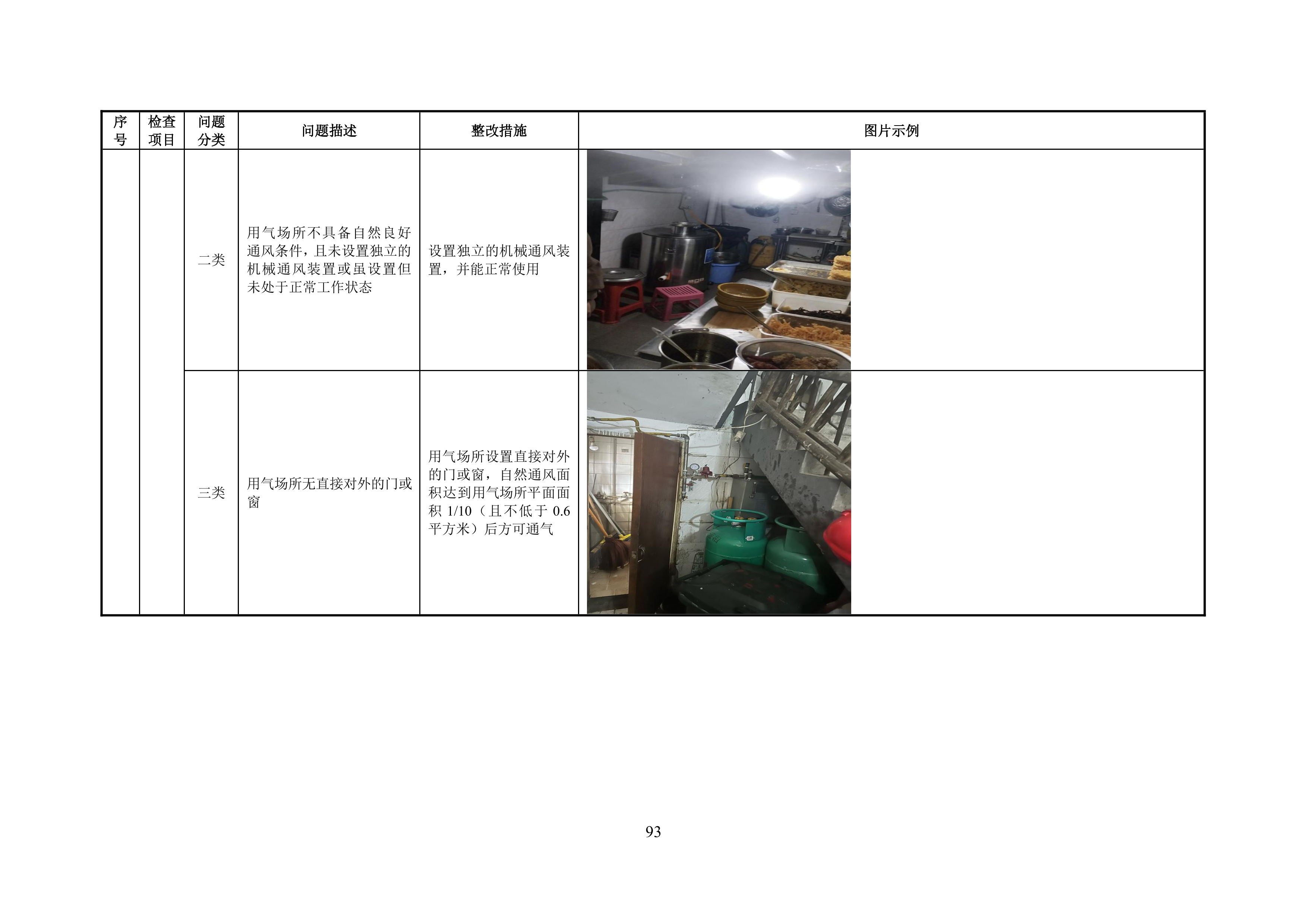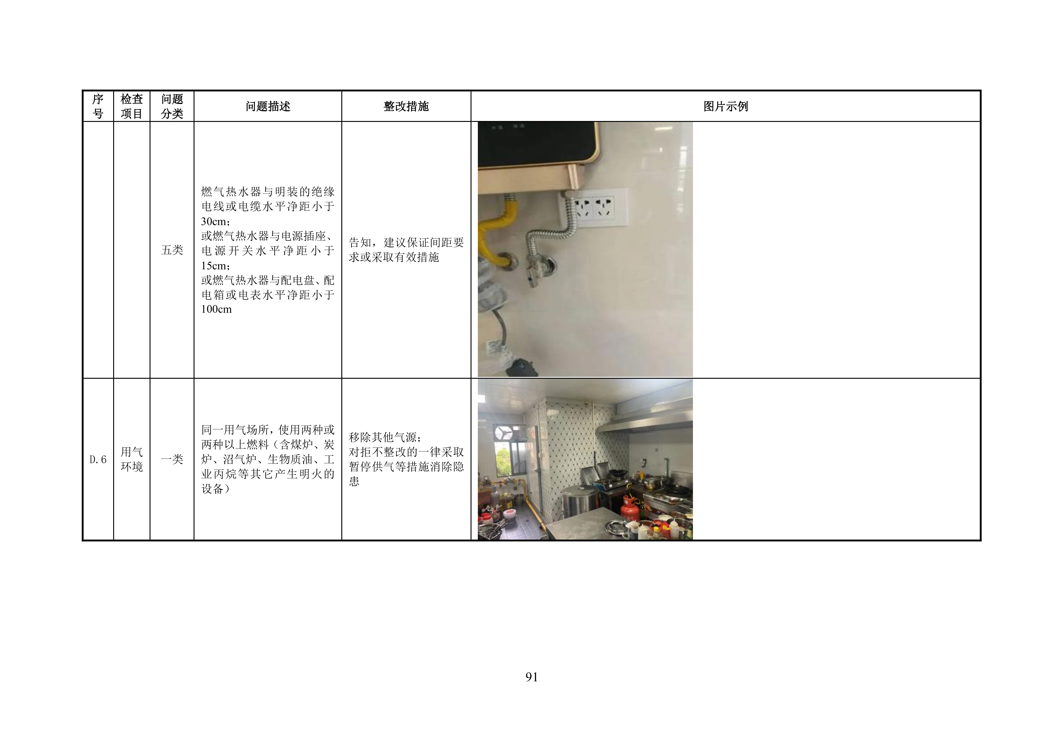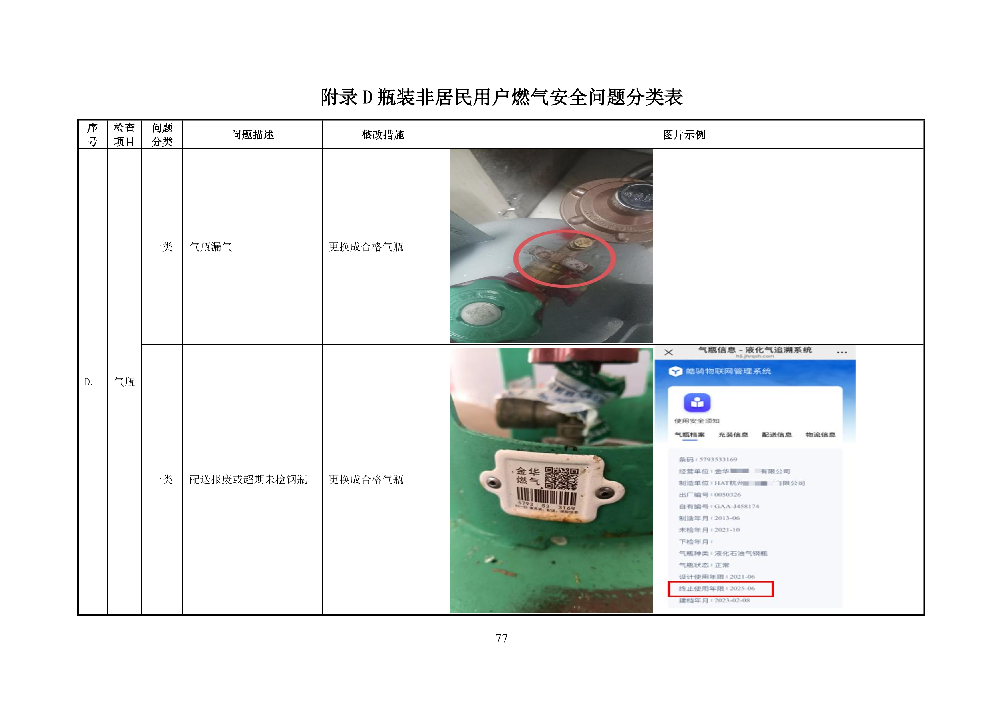 附录 D 瓶装非居民用户燃气安全问题分类表