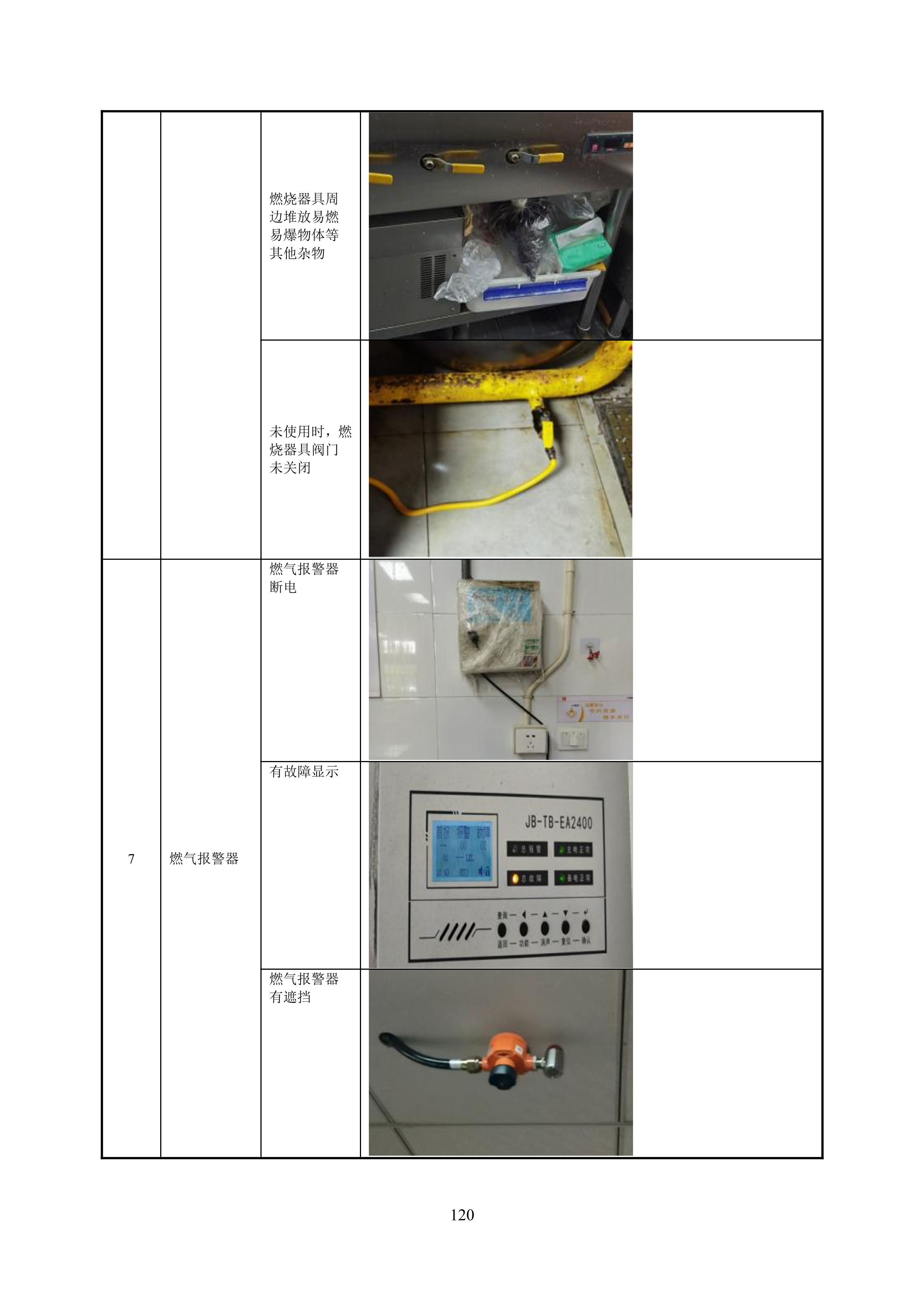 附录 D 瓶装非居民用户燃气安全问题分类表