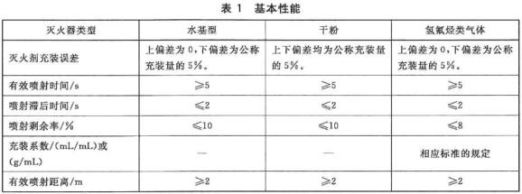 5.1.2 灭火器在20 °C士5 °C 时,其性能参数应符合表1的规定。