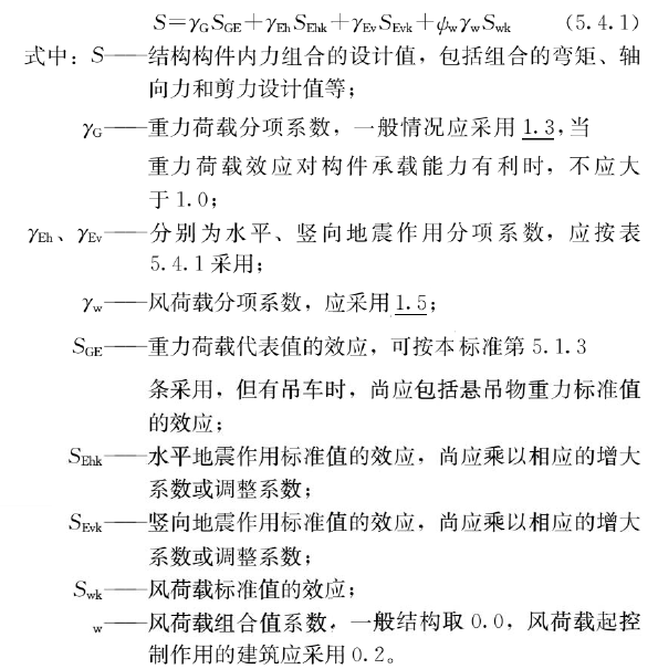 5.4.1 结构构件的地震作用效应和其他荷载效应的基本组合,应按下式计算: