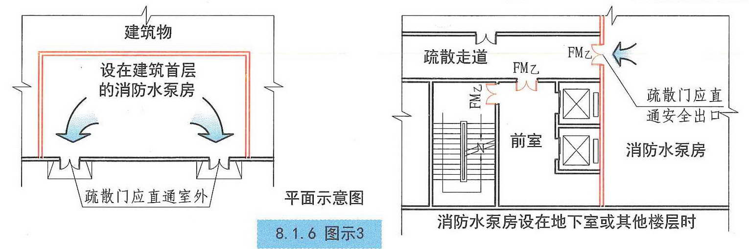 8.1.8 消防水泵房和消防控制室应采取防水淹的技术措施。【图示】